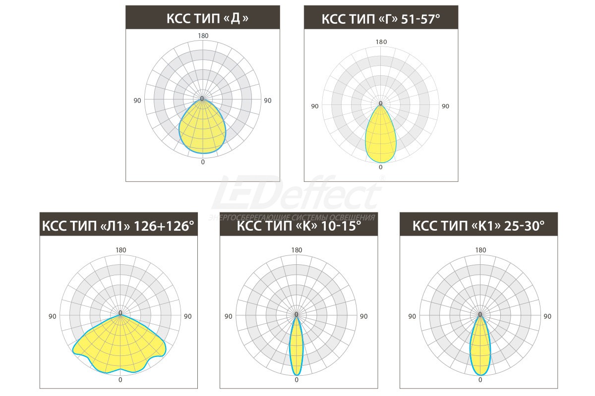 Для создания необходимой световой среды светильники серии KEDR могут быть оснащены Вторичной оптикой, которая позволяет сформировать необходимое потребителю распределение светового потока: КСС типа «Г», «Ш», «Л», «К».