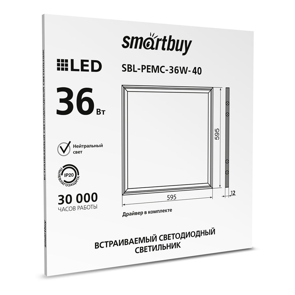 - Панель (LED) ультратонкая Smartbuy Pro 36W 595*595 /6500K (SBL-PEMC-36W-65)